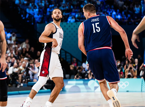 半决赛大战塞尔维亚,库里、詹姆斯、恩比德、布克和霍乐迪继续首发,杜兰特继续替补出战。