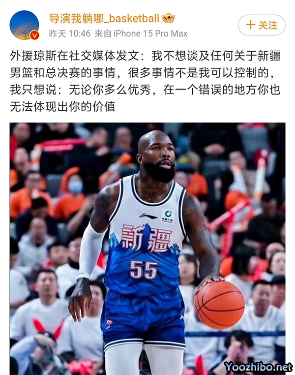在赛季中,琼斯就曾经抱怨,赛季结束后,琼斯也是一度表示自己在一个赛季前还是MVP。赛季结束后,琼斯加盟了香港金牛队,他成为了离队的第1人,不过当时很多球迷更多是认为琼斯只是去打暑假工,未来还是会回归新疆男篮的,可是近期,琼斯再一次在社交媒体上发表了动态。