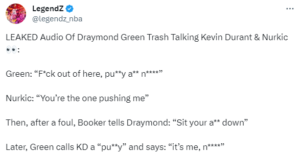 追梦下场时撞了一下努尔基奇,坐在替补席爆粗口:让TMD滚出去,他(努尔基奇)太软了。