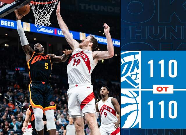 第二个加时中,多尔特三分命中,巴雷特暴扣,霍姆格伦也中三分,奎克利三分回应,又是多尔特突破2+1打成,维金斯三分再中!雷霆130-123领先。猛龙随后连追4分,但吉迪关键2+1打成。比赛失去悬念,最终雷霆击败猛龙。