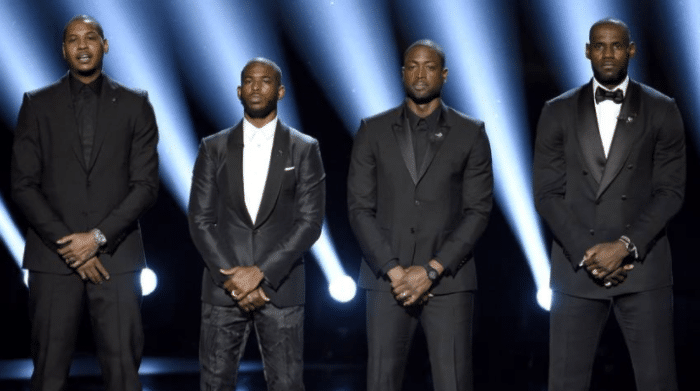 詹姆斯和安东尼都是2003年参加NBA选秀大会,在这之前他们就已经很熟悉了,选秀大会上詹姆斯毫无悬念的获得了状元,安东尼是探花。两人进入到NBA联盟之后也都证明了自己的实力,是各自球队的核心、全明星球员。场外他们的关系一直都很好,比如传闻中的安东尼在总决赛期间给詹姆斯“摆平事儿”,以及他们一起参加各种活动和家庭聚会,关系很好。