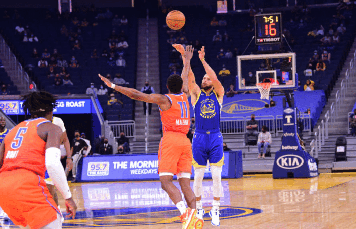 360直播讯 北京时间5月9日,勇士主场迎战雷霆,后者全明星后一直在摆烂,这场对决,勇士只用了半场时间就让比赛失去了悬念!而三节时间打完,勇士已经领先到39分,最终勇士主场136比97大胜雷霆取得两连胜。库里今天再次让外界知道了什么叫得分爆发力!
