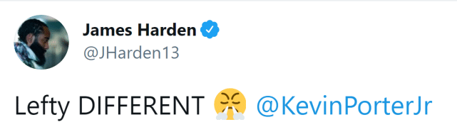 360直播讯 北京时间5月1日,篮网球星詹姆斯-哈登更新社媒,晒出了火箭新星小波特的一张照片(下图),并配文写道:“左撇子就是不一样!”小波特的球风和哈登相似,常常被拿来和大胡子相比,甚至被认为是哈登在火箭的接班人。