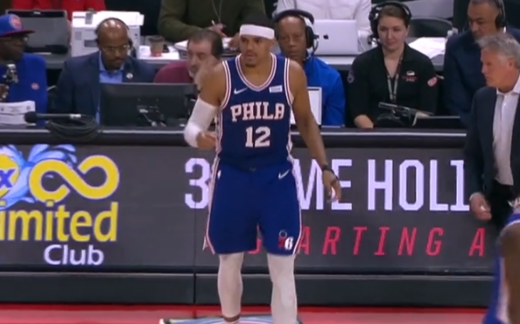 这场比赛恩比德、西蒙斯和库里三大首发缺阵,哈里斯挺身而出。