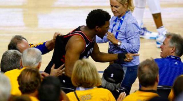 18-19赛季总决赛G3,伦纳德当时所在的猛龙队客场挑战勇士队。比赛中,洛瑞飞身救球摔倒在观众席中,起身后的洛瑞突然和一名中年男子起了冲突,这也让很多球迷感到诧异。通过回放,球迷们很快也找到了答案,原来,洛瑞在摔倒准备起身的时候,一名中年男子推了洛瑞一把,也这是这样的举动才引发了两者的争吵。
