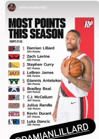 360直播1月24日讯 划水詹这赛季除了打雄鹿,拿了个30+的数据,其余的均在30分以下。但在最近利拉德转发的赛季至今得分榜上,最近火热的篮网三巨头无缘前三,老詹以356分排名第四。前三名分别是库里的363分,拉文的383分,利拉德的394分。没有一点出勤率,是排不了总得分榜前五的。36岁划水詹这出勤率,不得不让人敬佩啊!