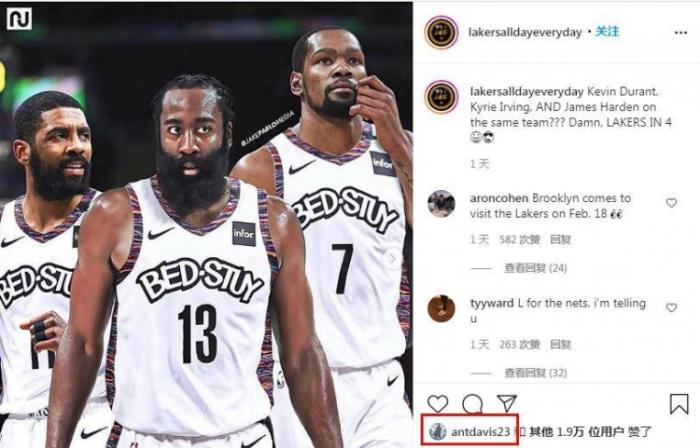 可摆在他们面前的是湖人这座高山,双核依旧稳健,阵容深度出色,浓眉对位任何球队都是一个优势点,即使是面对篮网,谁来防他呢?如果是杜兰特对抗会很吃亏,如果是小乔丹,那么浓眉拉出来投篮他也没什么办法!有趣的是湖人球迷晒出了篮网三巨头的P图,并写道:“杜兰特、欧文和哈登在同一队?该死,湖人4-0横扫他们!”浓眉进行了点赞!