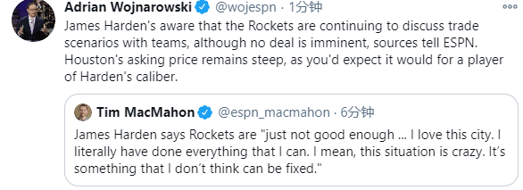 哈登说完这番话后结束采访,直接离开采访现场,名记表示这就像是哈登离开火箭的最后宣言似的。
