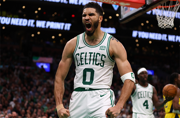 360直播讯 北京时间5月22日,NBA季后赛凯尔特人东决G1主场加时险胜步行者,总比分1-0开门红,塔图姆36分12篮板4助攻3抢断,布朗26分6篮板5助攻,绿军双探花62分拒绝逆转,布朗末节绝平三分,塔图姆加时关键时刻8分自我救赎。