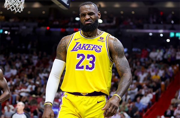 2023-24赛季,詹姆斯为湖人出战了71场常规赛,场均上场35.3分钟,能够拿到25.7分7.3篮板8.3助攻1.3抢断,投篮命中率54%,三分命中率41%和罚球命中率75%;季后赛出战5场,场均上场40.8分钟,拿到27.8分8.8助攻6.8篮板2.4抢断1盖帽。