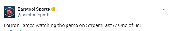 360直播讯 近日詹姆斯也看盗版的NBA直播引热议,据悉,詹姆斯好友使用StreamEast(国外一个白嫖各大联赛直播的网站)看NBA西部决赛,佩戴绿色棒球帽的詹姆斯坐在场边探头蹭球。