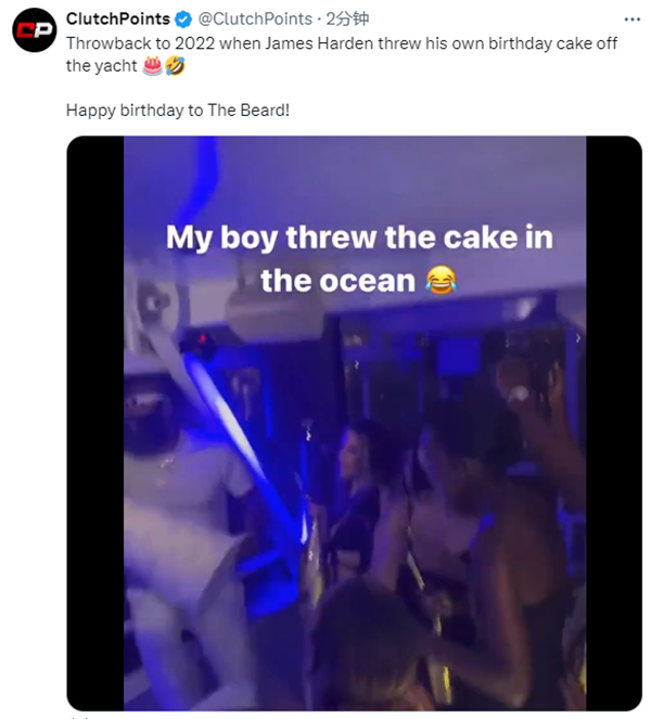 360直播讯 北京时间8月27日,快船球星詹姆斯-哈登迎来35岁生日,NBA官方、快船官方祝贺哈登,美媒也刷屏祝贺登哥,ClutchPoints调侃2年前哈登在生日派对上把蛋糕扔进大海。