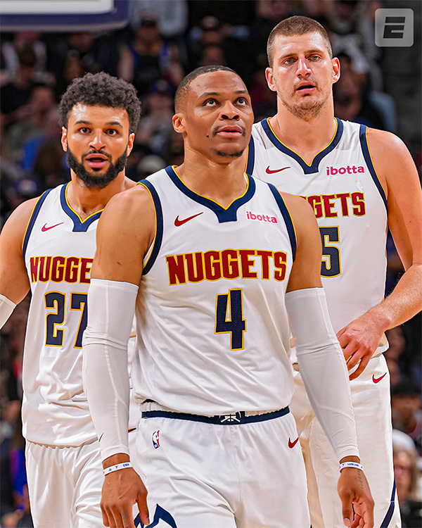 据球衣网站报道,掘金二年级新秀亨特-泰森将4号球衣让给了威少,自己则改穿5号球衣;泰森是2023年次轮37号秀,菜鸟赛季身穿4号球衣,为掘金出战18场比赛,场均仅上场2.7分钟,拿到1.1分0.5篮板;威少加盟掘金后,泰森把4号让给威少。