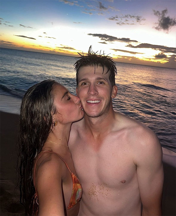 里夫斯现年26岁,他和女友珍娜-巴伯从高中就开始恋爱,两人一直相爱至今,珍娜-巴伯经常在湖人主场观看男友的比赛;今年休赛期,里夫斯带着女友度假,里夫斯赤膊出镜,巴伯则是穿着比基尼,两人在海水中甜蜜拥抱尽享生活。