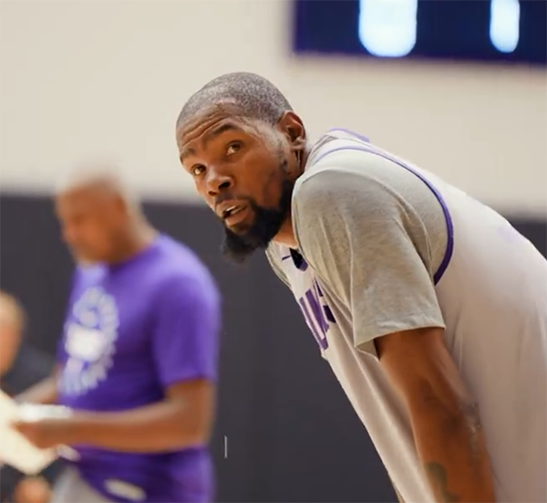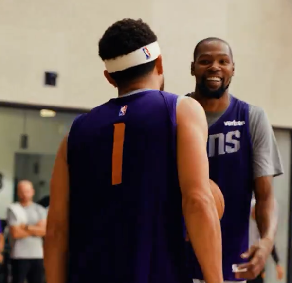 360直播讯 北京时间10月2日,NBA各支球队都已开启训练营积极备战新赛季,太阳官方晒出训练营首日的现场画面,杜兰特累得大汗淋漓,布克、比尔在新帅的指导下都卖力防守。