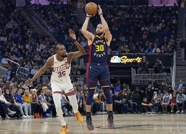 360直播讯 北京时间2月1日,NBA常规赛太阳客场130-105击败勇士,杜兰特出战29分钟,13投6中、三分9中5拿到19分6篮板3助攻,末节拒绝刷分,因此连续23场得分20+纪录中断,杜兰特距离解锁30000分仅仅只差75分;布克31分11助攻,比尔21分,太阳三巨头合砍71分率队大胜勇士。
