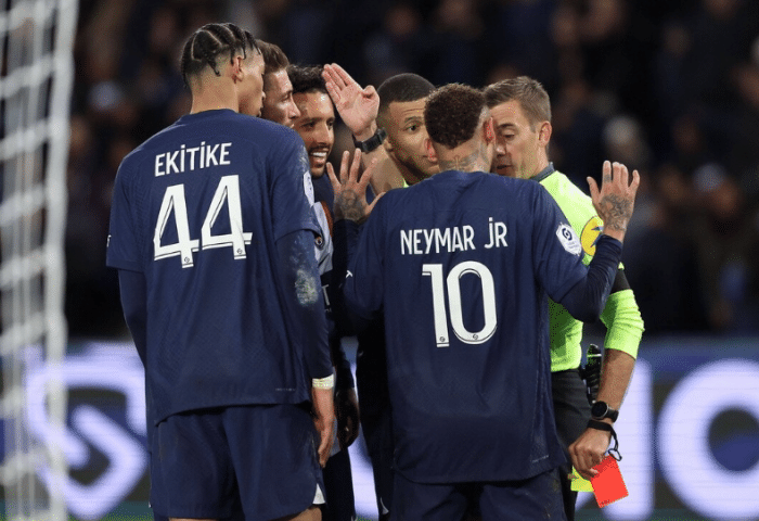 360直播12月29日讯 法甲联赛第16轮,巴黎圣日耳曼主场2-1小胜斯特拉斯堡,梅西仍在阿根廷度假,缺席了本场比赛,内马尔和姆巴佩双核带队出击,两人踢得非常憋屈,遭到了对手的疯狂针对。内马尔在比赛中被侵犯了6次,成功过掉了对手3次,但是裁判有双标的嫌疑,让内马尔心态发生了变化,出现扇对手耳光和跳水假摔,随即被裁判连续出示2张黄牌,被红牌罚下。