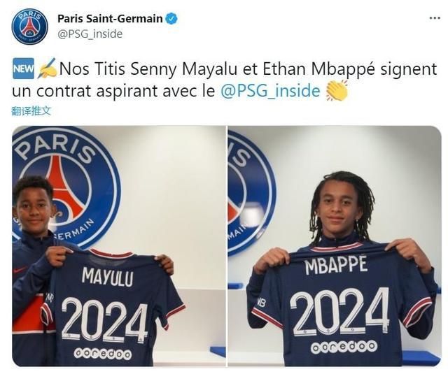 巴黎官方在不久前宣布,和青训小将Titis Senny Mayalu以及15岁的伊桑-姆巴佩续约至2024,后者正是基利安-姆巴佩的弟弟。