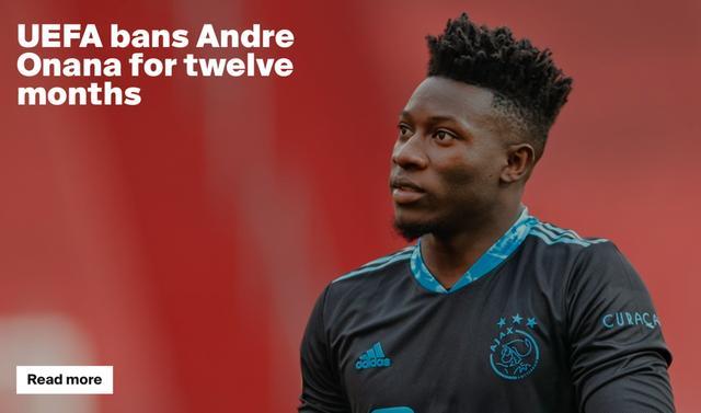 北京时间2月5日,阿贾克斯发布官方公告:门将奥纳纳因为违反反兴奋剂条例而被禁赛一年。