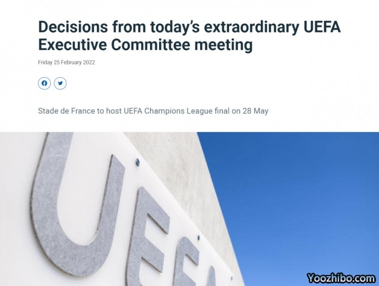 俄乌战事:2022欧冠决赛举办地更改!由圣彼得堡更改至巴黎