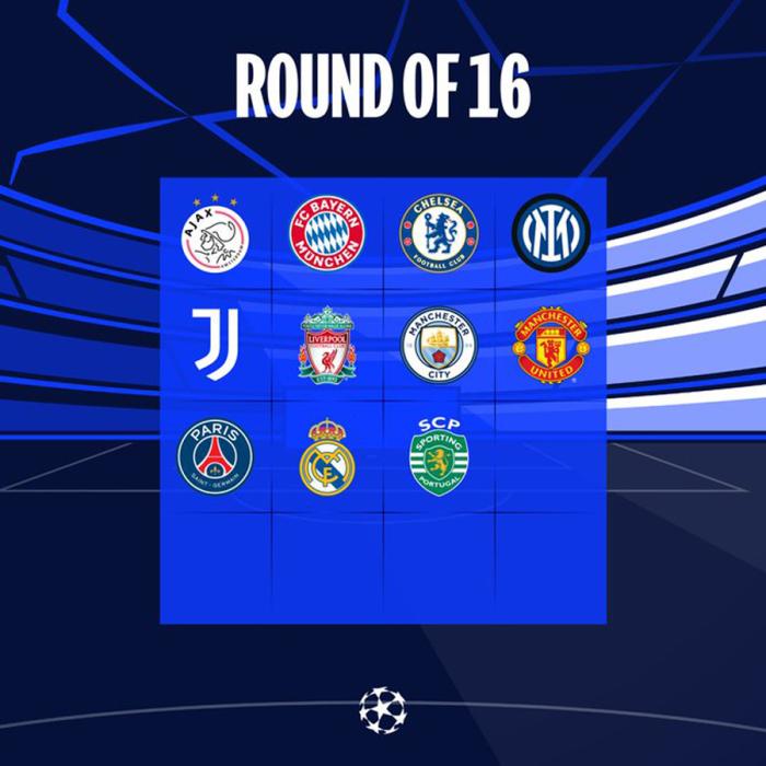 曼联欧冠16强战潜在对手:巴黎圣日耳曼、葡萄牙体育、马竞(或波尔图、米兰)、巴萨(或本菲卡)、国米(或皇马)、塞维利亚(或里尔、沃尔夫斯堡、萨尔茨堡)、尤文图斯。