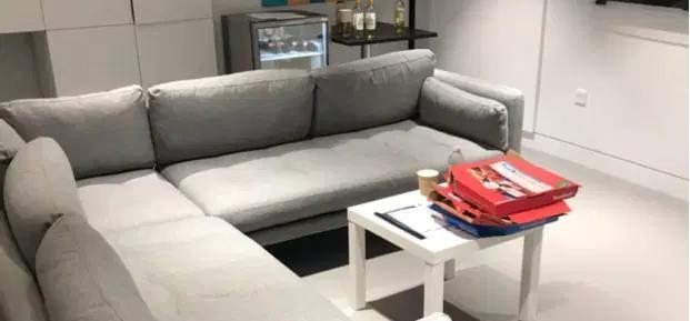 相反,英格兰的更衣室则非常干净,只有几个披萨盒整齐地堆放在桌子上。