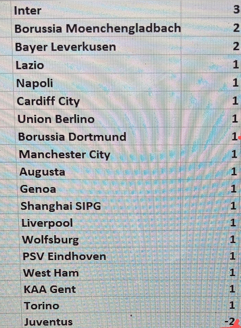 当然这也只是球迷们的调侃,毕竟足球比赛中,球员乌龙的话,进球数并不算-1,只是会算作这名球员的乌龙球而已。所以从这个角度来看,尤文图斯打进4个进球,其中有2个乌龙,是欧洲杯至今进球最多俱乐部,也值得骄傲一下。
