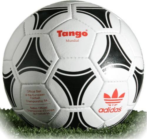 Tango Mundial(探戈世界)是阿迪达斯为欧洲杯打造的第一款赛事专用球,20个“阿迪达斯三角” 形状的嵌面相互连接形成12个大小相等的圆形,Tango Mundial在外观上与其他的Tango足球基本一致,但表面的商标和文字都被设计成了红色。