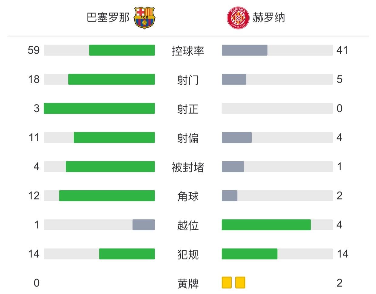赫罗纳首发:13-加萨尼加、16-哈维-埃尔南德斯、5-戴维-洛佩斯、22-圣地亚哥-布埃诺、4-阿尔瑙-马丁内斯、18-罗梅乌、12-托尼-苏亚雷斯(60'20-扬-科托)、24-博尔哈-加西亚(46'14-阿莱士-加西亚)、8-齐甘科夫(71'17-罗德里戈-里克尔梅)、23-伊万-马丁(85'11-巴莱里-费尔南德斯)、9-卡斯特利亚诺斯(60'7-斯图亚尼)