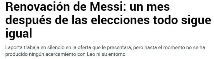 《马卡报》称,拉波尔塔和他的团队没有急于给梅西报价是因为他们还在确认合同上的一些细节,同时他们要搞清楚俱乐部实际的经济状况,以便提供准确的报价,不给球员画大饼。