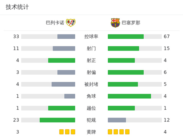 全场比赛结束,巴塞罗那1-1巴列卡诺。