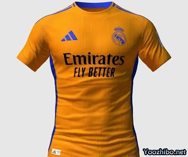 阿迪达斯为皇家马德里俱乐部精心打造的2024-25赛季客场球衣,将活力四溢的橙色与沉稳的蓝色巧妙结合,呈现出一种既复古又现代的美感。球衣整体以橙色为主色调,这一选择不仅象征着球队的活力与热情,更与皇马历史上某段辉煌的时期相呼应。