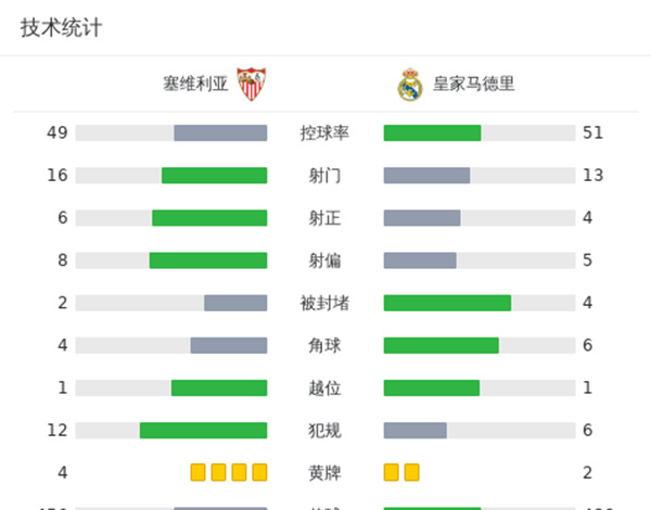 全场比赛结束,最终皇马1-1塞维利亚。