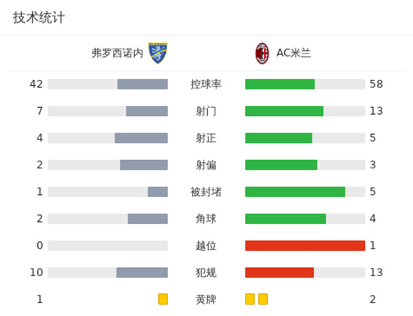 全场比赛结束,最终AC米兰3-2弗洛西诺内。