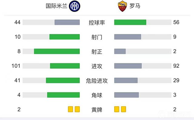 全场比赛结束,国际米兰3-1罗马。