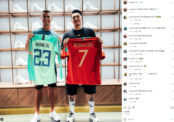 王大雷晒C罗合照:珍藏已久的照片,荣耀时刻!
