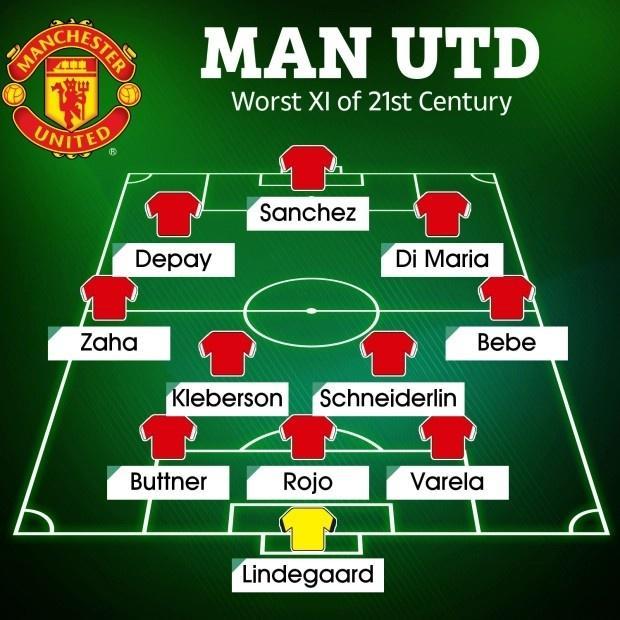 《太阳报》曼联21世纪最糟糕引援阵容如下: