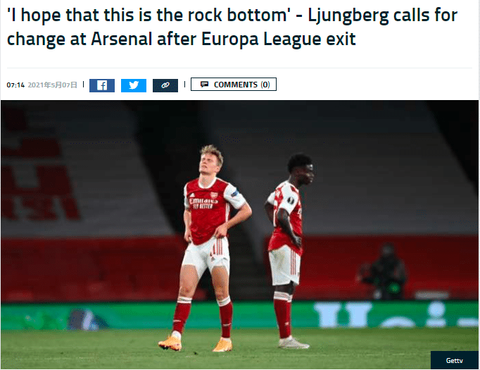 360直播讯 北京时间5月7日,欧联半决赛次回合阿森纳0-0战平比利亚雷亚尔,总比分1-2遭到淘汰无缘决赛。前阿森纳临时主帅、BT体育评论员永贝里希望阿森纳现在已经触底,接下来可以反弹了。