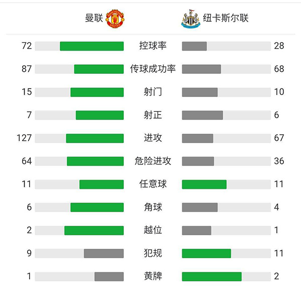 查看:曼联vs纽卡斯尔 全场录像技术统计: