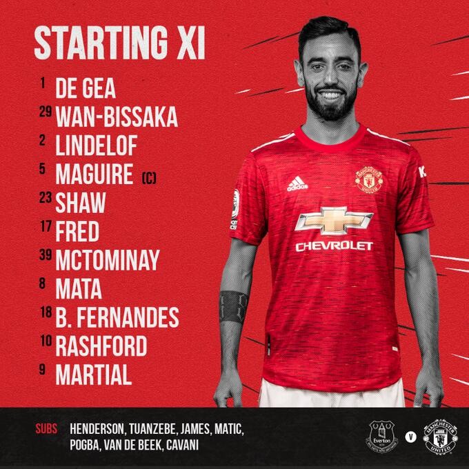 北京时间11月7日晚20:30,英超第8轮将由埃弗顿坐镇主场迎战曼联,目前两队首发出炉: