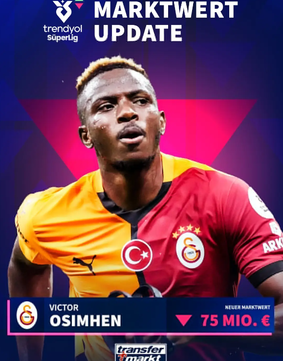 奥斯梅恩的身价下跌并非毫无缘由。今夏,他租借加盟加拉塔萨雷,离开了更具影响力的欧洲五大联赛,转投土超赛场。土超联赛虽然在土耳其国内有着重要地位,但在国际足坛的影响力相对有限。这种转会选择无疑让市场对奥斯梅恩的价值评估产生了变化。