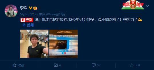 李铁在微博中写道:“晚上跑步也挺舒服的,12公里61分钟多,真不如以前了!得努力了!”球员时代的李铁就是一名体能出色的“跑不死”,在退役之后,他始终坚持锻炼并保持了出色的身材。