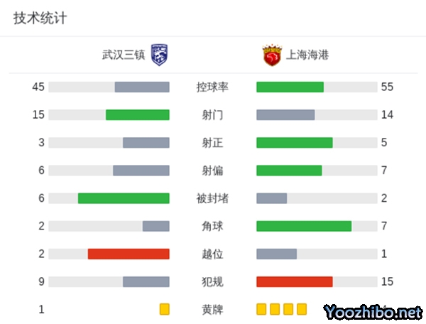 全场比赛结束,武汉三镇0-2上海海港。