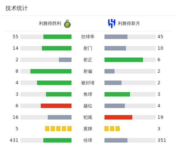 关键事件: 第17分钟,阿卜杜勒哈米德右路突破倒三角回敲,米林科维奇跟进推射得手,利雅得新月1-0利雅得胜利!