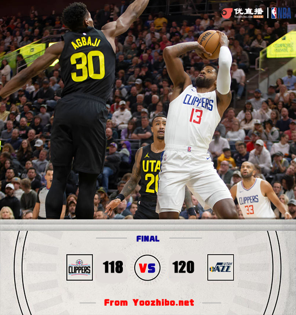 360直播10月28日讯 NBA常规赛,爵士今日迎战快船,前者首场比赛不敌国王,后者则是轻取开拓者,此役曼恩和小莫里斯缺战。比赛上来,爵士率先进入状态打出7-2的开局取得领先,不过快船随后就将比分追了回来,双方在进攻端打得十分流畅,多次命中超远三分,次节快船的命中率出现下滑,而爵士依旧攻势不减,连续的远投将分差拉开到了两位数,半场结束时快船落后9分;下半场回来,乔治开始带队追分,个人里突外投单节独得15分,但爵士总能给出回应没有给对手反超的机会,末节顽强的快船还是利用小个阵容追了回来,关键时刻威少绝平球不中,最终爵士力克快船拿到首胜。