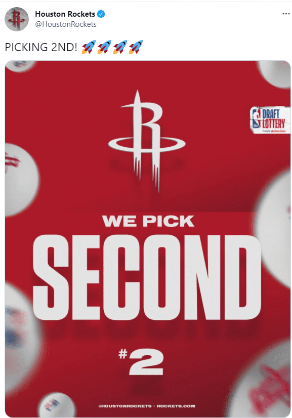 无论如何,恭喜火箭抽到榜眼签,无缘状元签仍旧值得祝贺,获得重建的年轻筹码;火箭官方第一时间发推祝贺抽到榜眼签,晒出4个火箭起飞的表情。