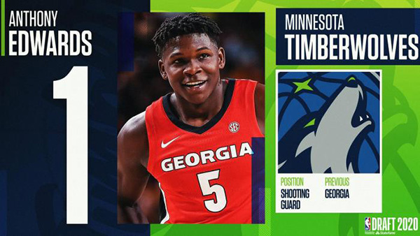 2020NBA选秀大会:爱德华兹状元 乔丹成功入手三球