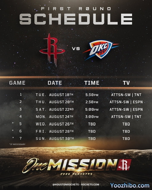 火箭vs雷霆季后赛首轮赛程出炉:8月19号上午6点30分开战!