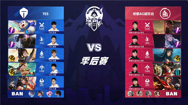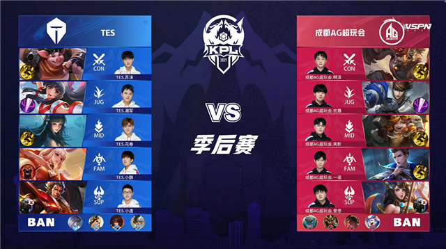 双方常规开局。1分08秒TES拿下中路河道之灵。2分38秒成都AG拿下暴君。5分01秒成都AG摧毁敌方下路外塔。5分53秒成都AG拿下主宰。6分12秒双方互换边路外塔。6分29秒双方中路1换1,成都AG拿下一血。7分23秒成都AG摧毁敌方下路二塔。7分30秒成都AG拿下暴君。8分20秒成都AG上路击杀沈梦溪并摧毁上路二塔。8分44秒上路团战成都AG打出0换2并摧毁敌方上路高地塔。10分24秒TES野区击杀盾山。10分39秒成都AG拿下暗影暴君。13分17秒中路上河道团战TES打出0换3。13分46秒TES摧毁敌方中路外、二塔。15分30秒野区团战TES打出0换3。15分51秒TES摧毁敌方下路二塔。16分07秒TES摧毁敌方中路高地塔。16分18秒TES高地上击杀公孙离。16分42秒TES拿下暗影暴君。18分30秒TES拿下暗影主宰。20分05秒高地团战TES击杀盾山。21分08秒中路团战成都AG打出2换5。21分40秒成都AG摧毁敌方中路二塔。21分54秒成都AG摧毁敌方水晶拿下比赛。