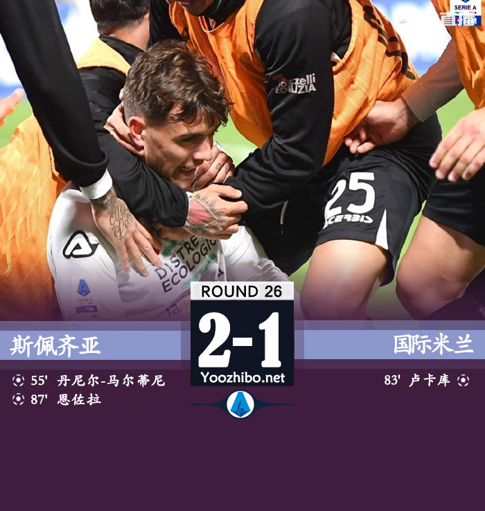 360直播讯 北京时间3月11日凌晨3点45分,2022-23赛季意甲第26轮在皮科球场展开角逐,国际米兰客场挑战斯佩齐亚。上半场劳塔罗失点,下半场丹尼尔-马尔蒂尼打破僵局,卢卡库点射扳平,邓弗里斯造点后送点,恩佐拉再次反超。最终国米客场爆冷1-2不敌斯佩齐亚,国米遭遇联赛客场两连败。积分榜方面,国米积50分位居第2,距榜首那不勒斯15分。